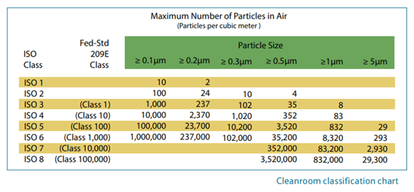 100級(ISO 5)-使用HEPA過濾器并不能保證潔凈室工作臺內部將達到100級(ISO 5)。您需要在工作臺內保持適當的氣流。