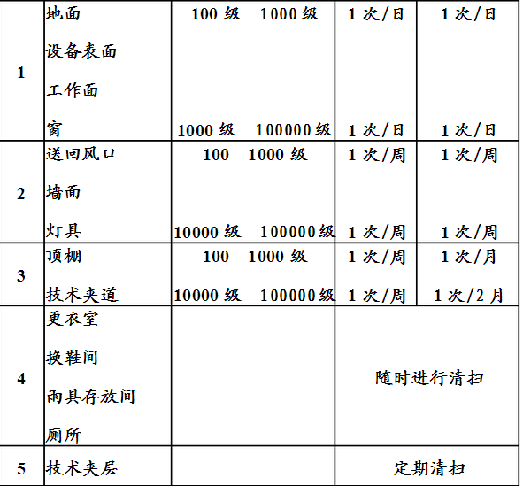 1、對潔凈室的清掃、擦試,其周期可參照下表進行:#p#分頁標題#e#