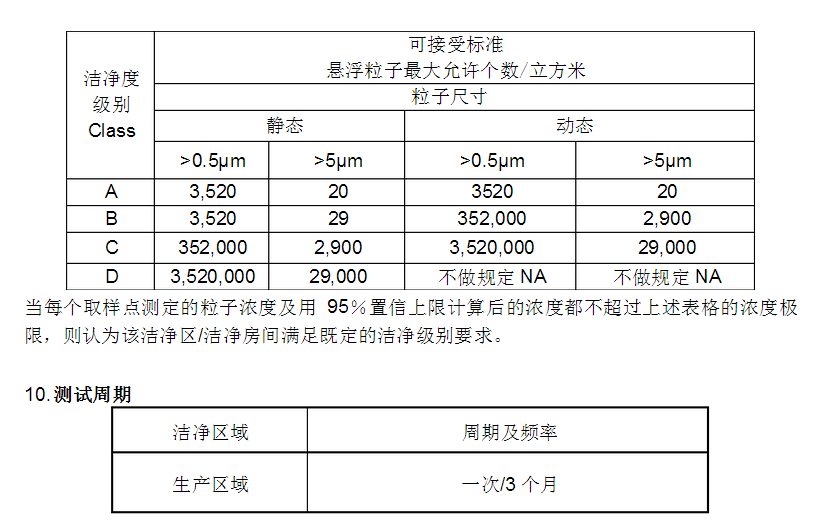 4.1 GB/T 16292-2010_醫藥工業潔凈室(區)懸浮粒子的測試方法 4.2 質量系統GMP實施指南 5. 測試條件:
