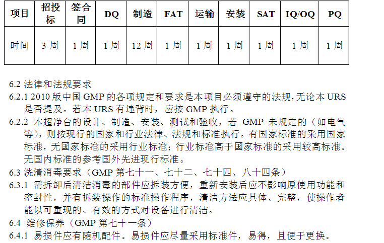 ⑦現(xiàn)場(chǎng)安裝調(diào)試的時(shí)間 ⑧做IQ、OQ驗(yàn)證的時(shí)間 ⑨操作培訓(xùn)的時(shí)間